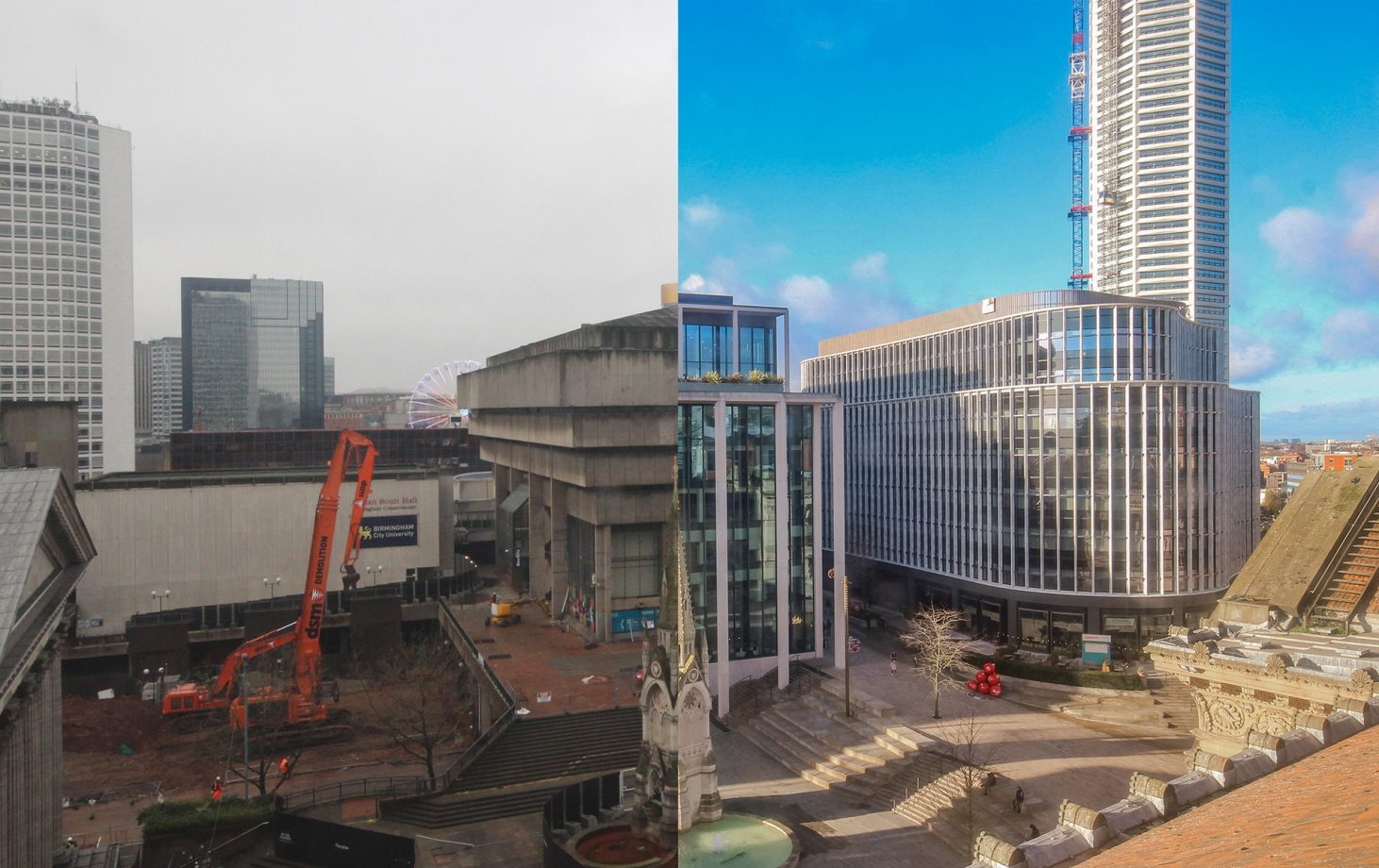 After several years of planning and lots of hard work going on behind the scenes, construction work swiftly got underway on 14th December 2015 with the demolition of the existing buildings on the site in order to make way for what we can see today – a renewed Chamberlain Square along with five commercial buildings, four of which are office-led, plus the world-first residential tower, the 49 storey, 155 metre tall Octagon.