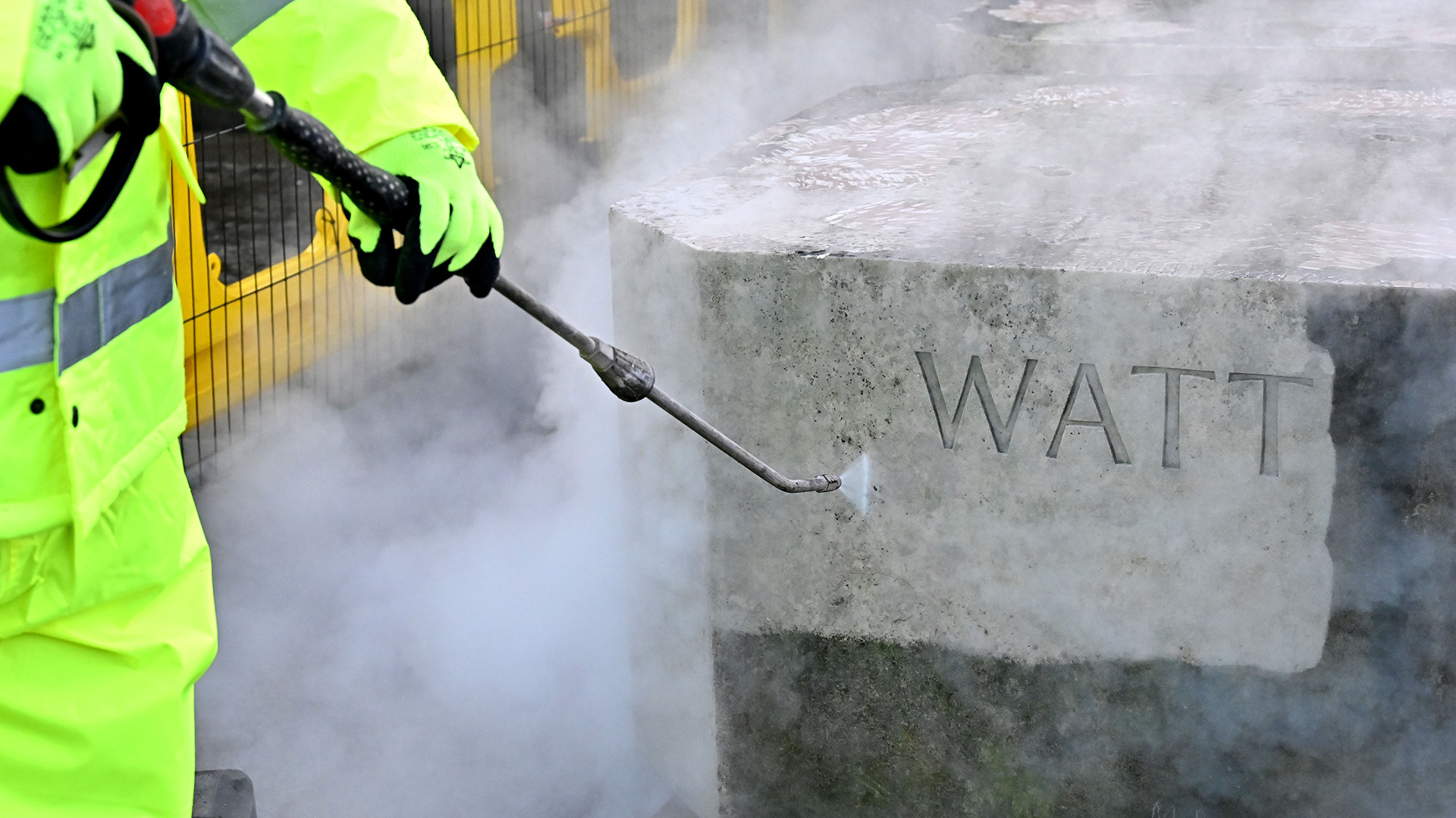 The statue of James Watt was carved in 1868 in Portland stone. It originally stood alongside the Victorian Central Library and was moved to the western side of Chamberlain Square in 1970.